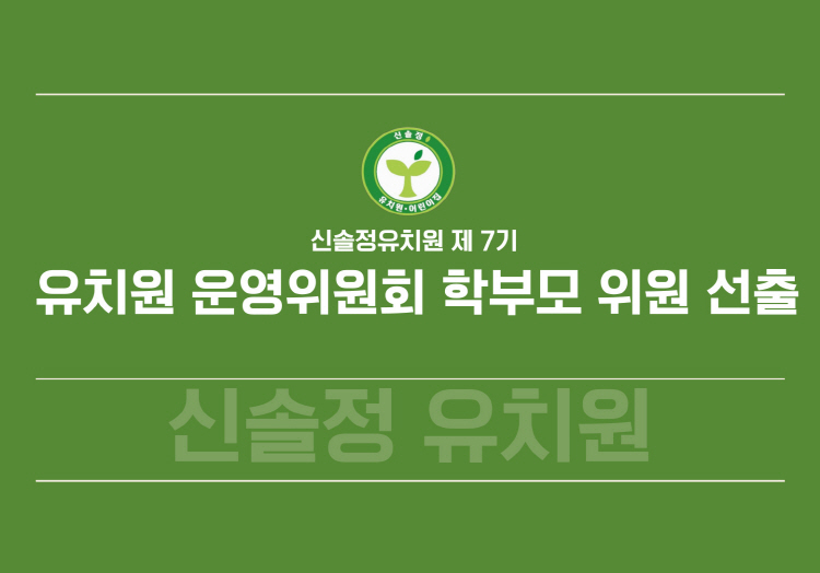졸업생 공간 즐겁고 행복했던 신솔정에서의 추억, 영원히 간직하세요~ 자세히보기 유치원 공지사항 +more 2026 전반기 부모공감 토크콘서트 안내~* 2026 3월 창의융합콘서트 운영 안내~* 3월 토요가족 체험안내(유아교육진흥원)~* 2025학년도 신솔정 새해복 많이받으세요! 2025학년도 졸업식 식단표 +more 2026년 3월 13일 식단 2026년 3월 12일 식단 2026년 3월 11일 식단 2026년 3월 10일 식단 2026년 3월 9일 식단 자유게시판 +more 2025학년도 겨울방학 ▶절제◀ 2025학년도 여름방학 ▶동행◀ 나무반 김지안 겨울방학 방학동행책 새싹반 신이현 방학동행책+여름방학사진 은수아 신솔정유치원 3월 일정표 신솔정유치원 식단표 3월 건강식단 원아모집 소중한 우리아이들을행복한 어린이로 자라게 합니다. 자세히보기